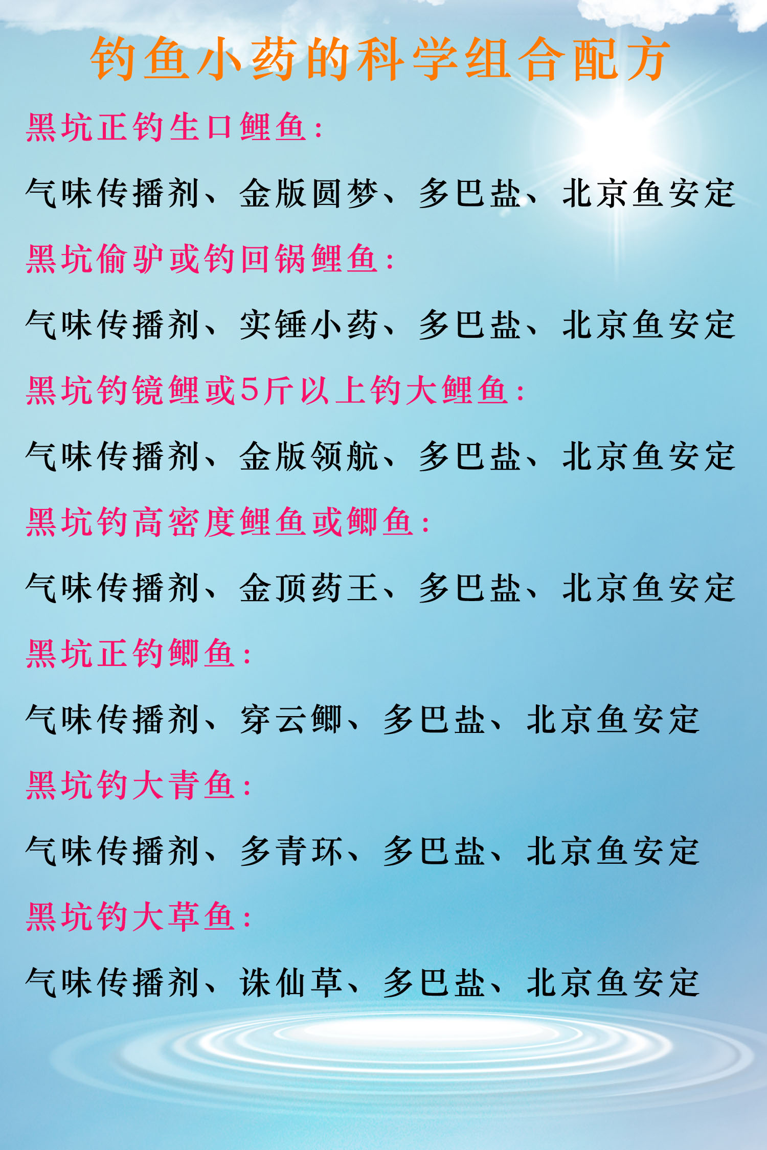 清晨,他们带着装备和神聚小药来到黑坑边,蓝天白云下,湖水波光粼粼,仿佛大自然也在欢迎他们的到来,李明慎重其事地按照配方调配鱼饵,一边调配一边笑着说:“这小药就是我们的秘密武器。”
